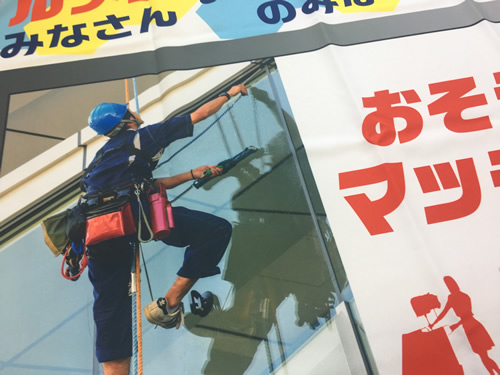 加工につきましては、壁面掲載を考えてハトメ加工を行い、四隅はもちろん横幅にはバランスにてハトメを入れております。