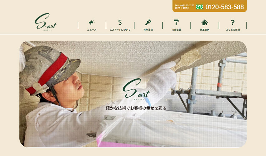 名古屋市昭和区で外壁塗装・内装塗装を行う会社S-art(エスアート)の新規WEBサイト制作のサポートを行いました。